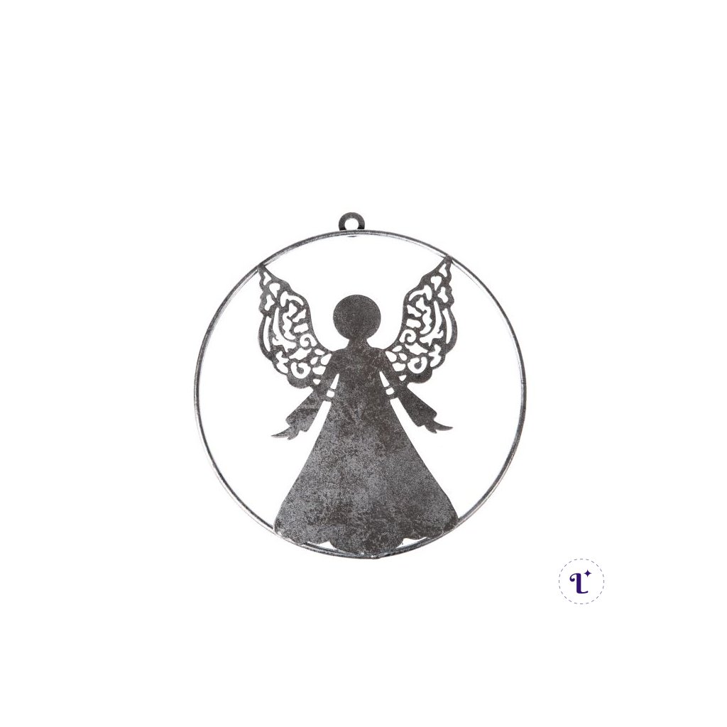 Kovová závesná dekorácia na stenu - anjel 20x21,5x0,4 cm
