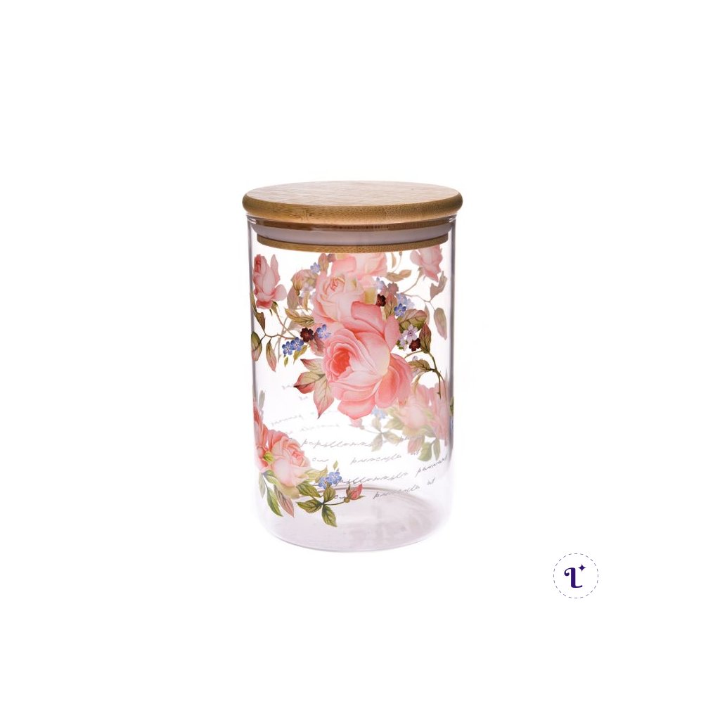 Sklenená dóza s bambusovým víčkom - ruže 840ml
