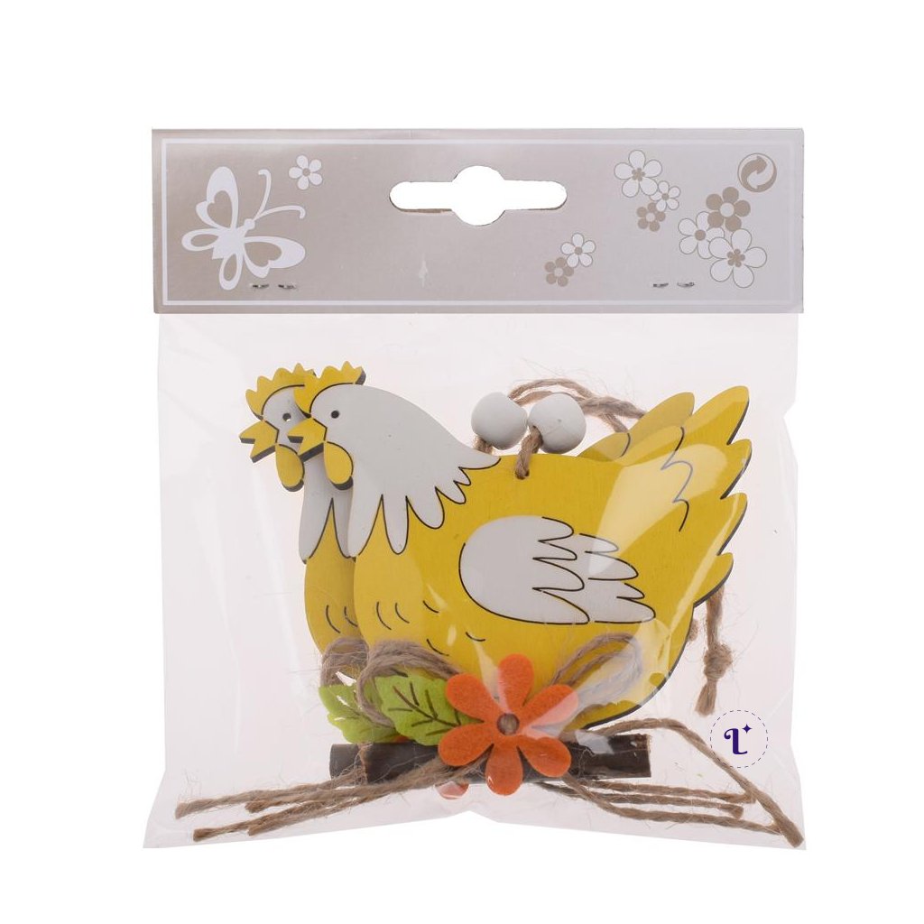 ZÁVES KURA ŽLT/BIE DREVO S/2 8,5*8,3CM