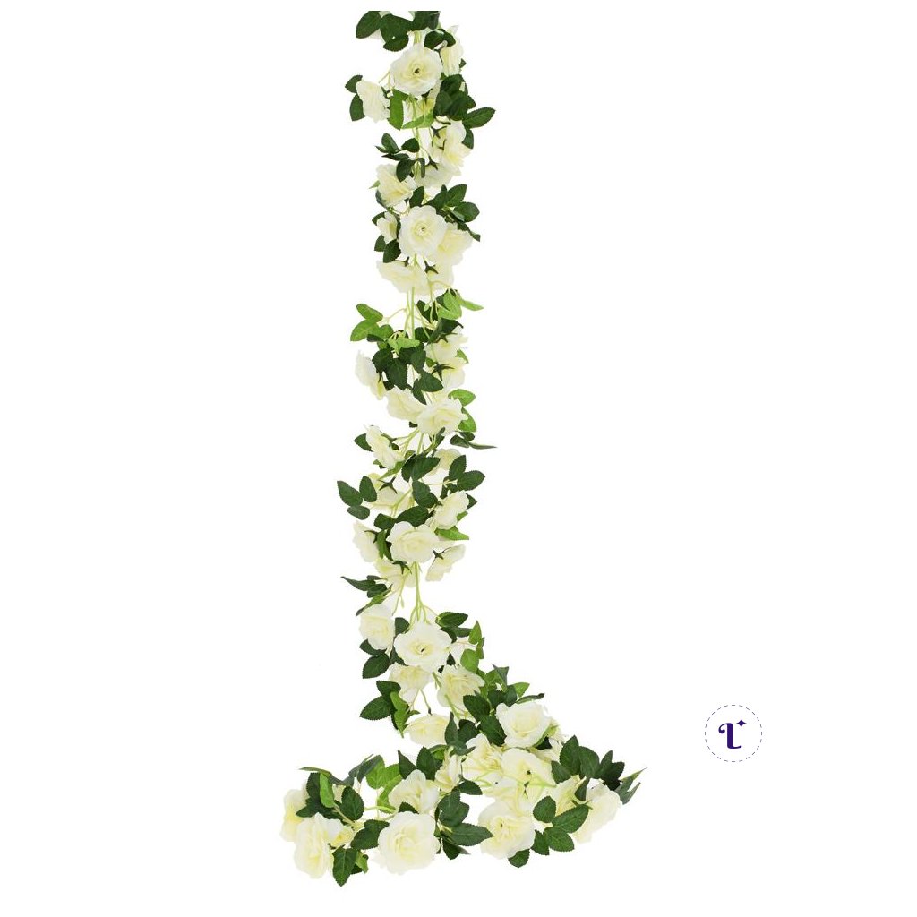 GIRLANDA RUŽA KRÉMOVÁ, ZELEŇ 168CM