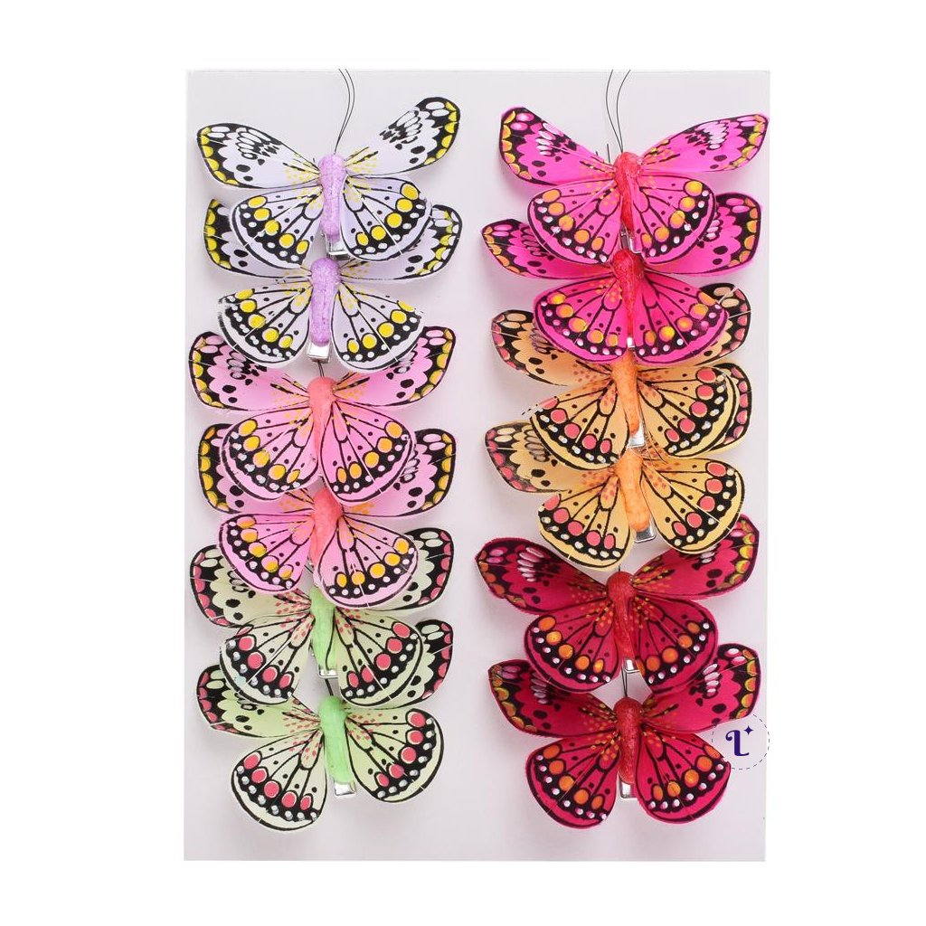 MOTÝLE FAREBNÉ NA KLIPE 7CM S/12