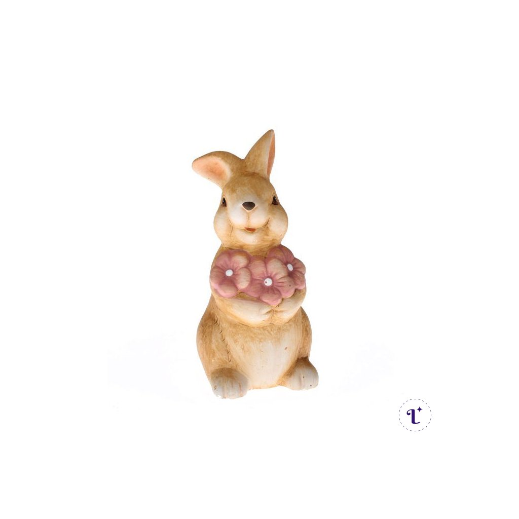 Keramický zajac s kvetinou 10x18,5x9 cm