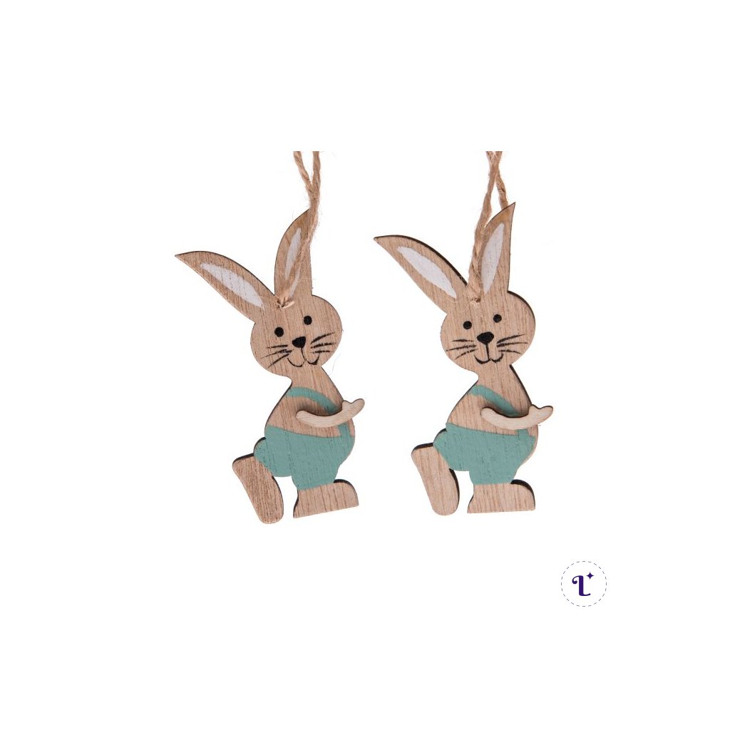 Drevený závesný zajac - sada 2 ks, 10x14x0,9 cm