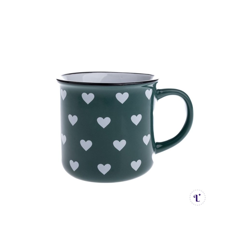 Keramický hrnček - zelený s bielymi srdiečkami 400ml