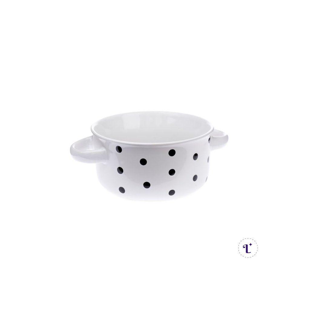 Miska s uškami bodková keramika biela 560ml 13,5x7x12cm
