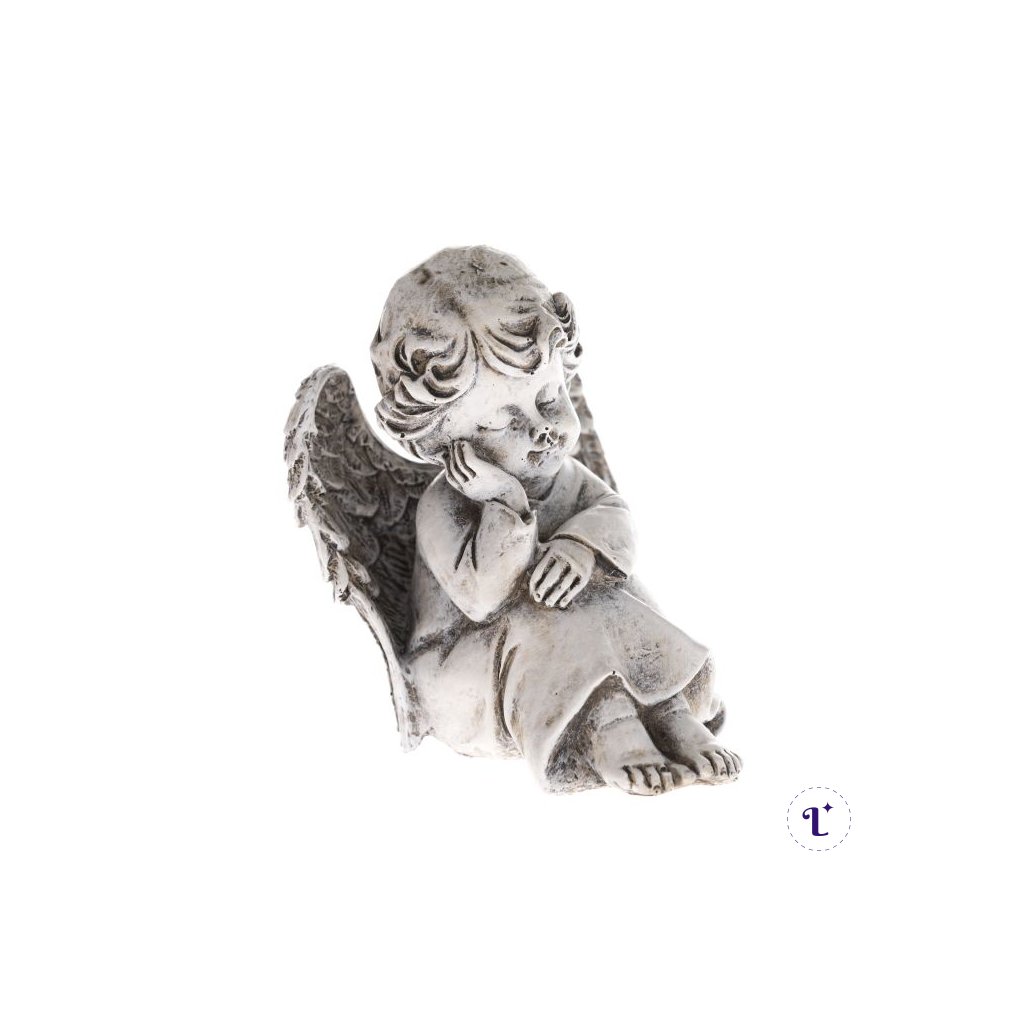 Polyresinový sediaci anjel- sivý 8,5 x 10 x 8,5 cm
