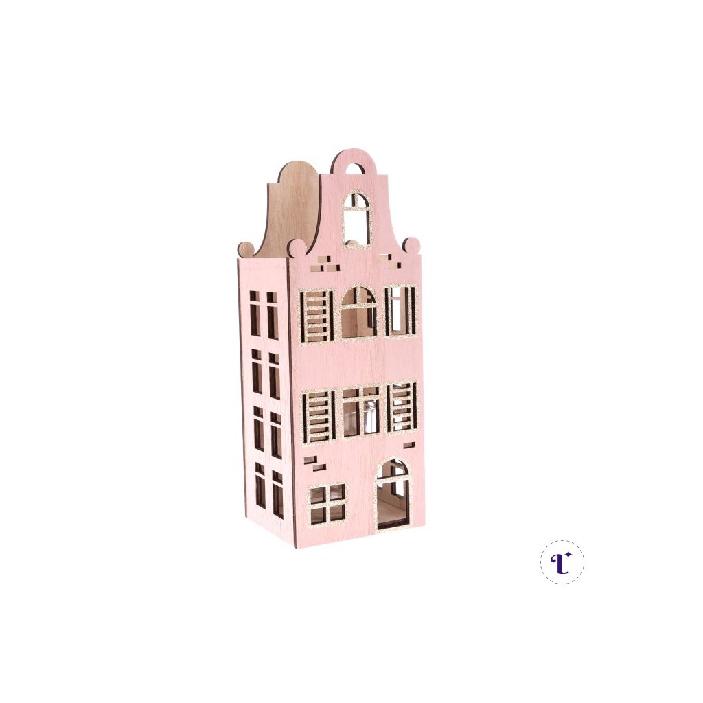 svietnik - drevený domček, ružový 10x26x9 cm