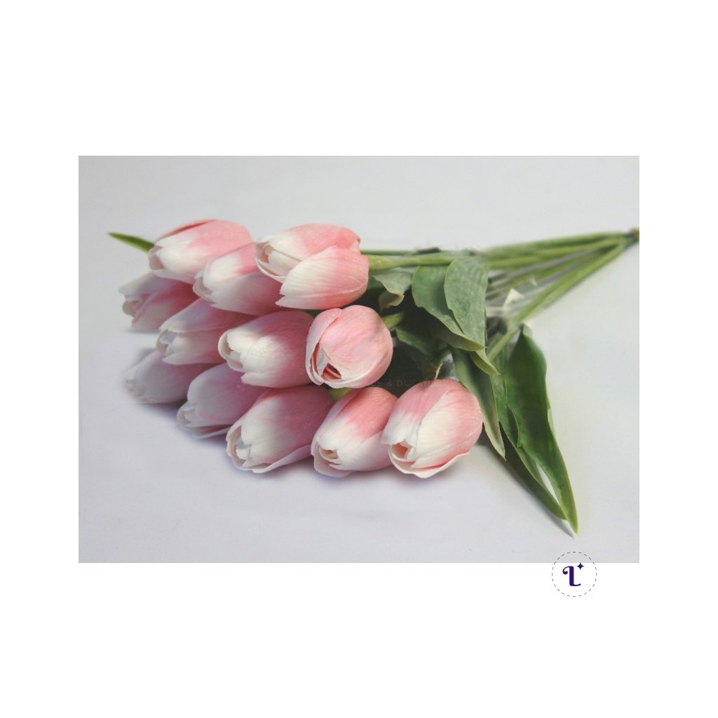 Tulipán umelý - bielo ružový, jemne bielený, 44cm - cena za 1ks