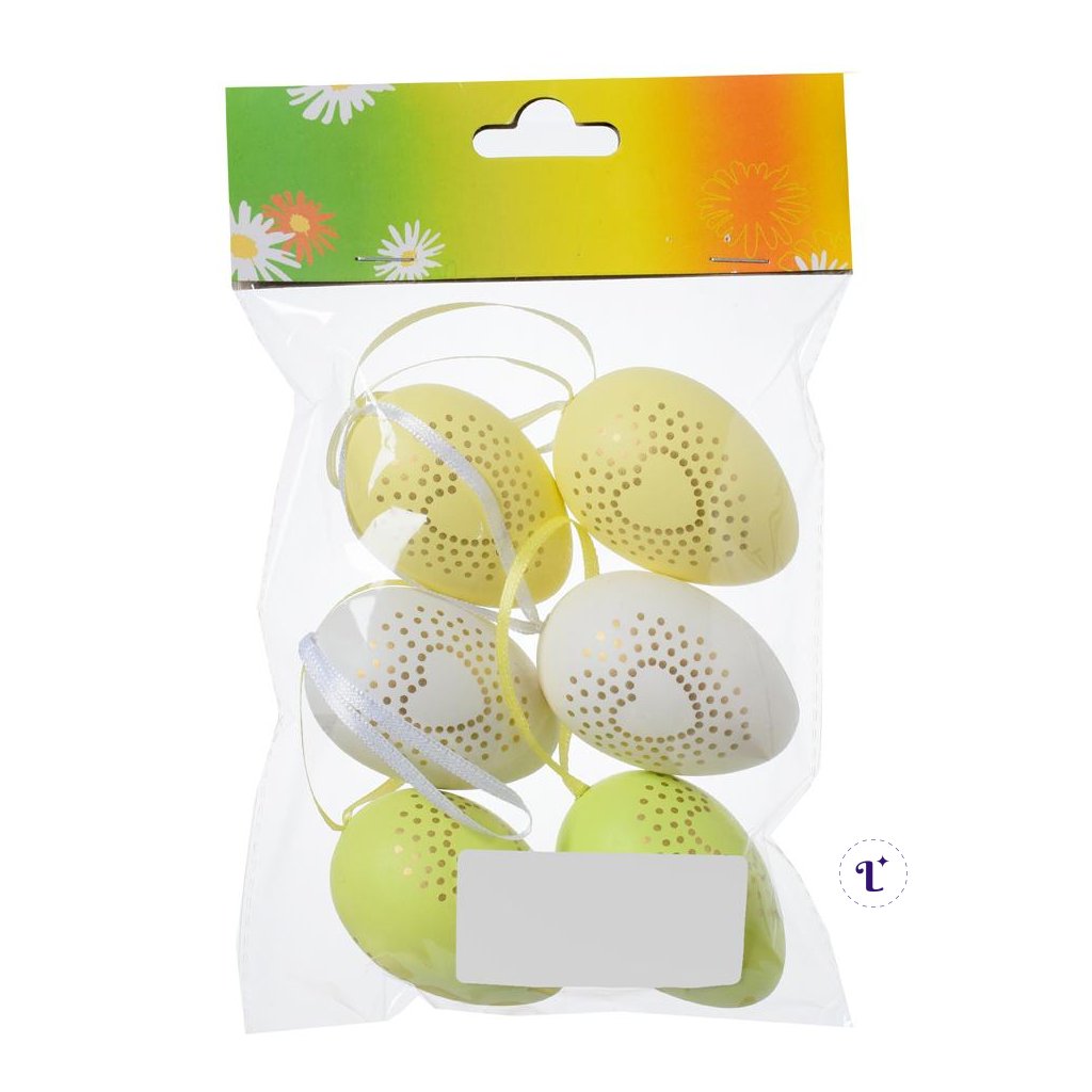 VEĽKÁ NOC Vajíčka Plastové vzorované VAJÍČKA BIE/ŽL/ZEL VZOR SRDCE PLAST S/6 4*4*6CMDodatočné parametre