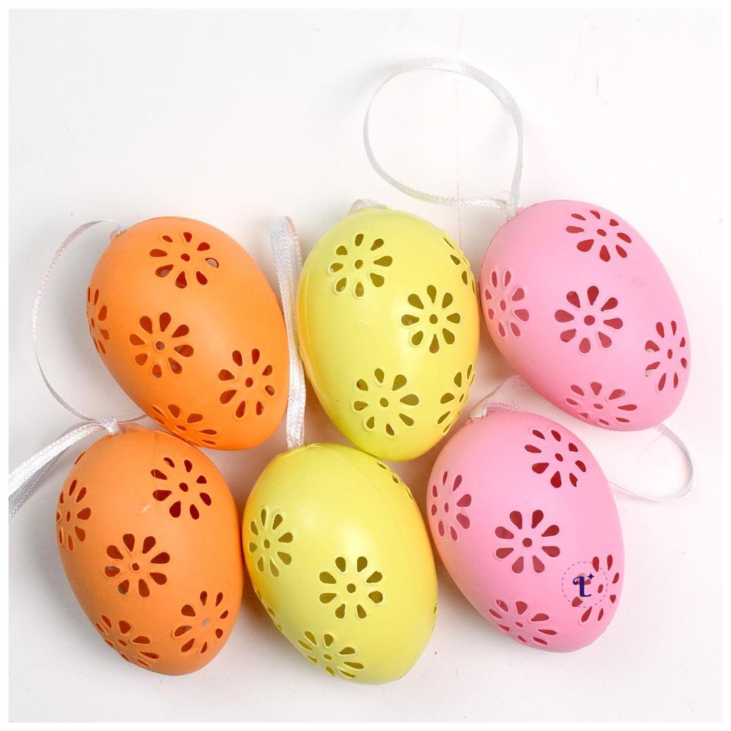VEĽKÁ NOC Vajíčka Plastové jednofarebné VAJÍČKA VZOR KVET FAREBNÉ S/6 6CMDodatočné parametre