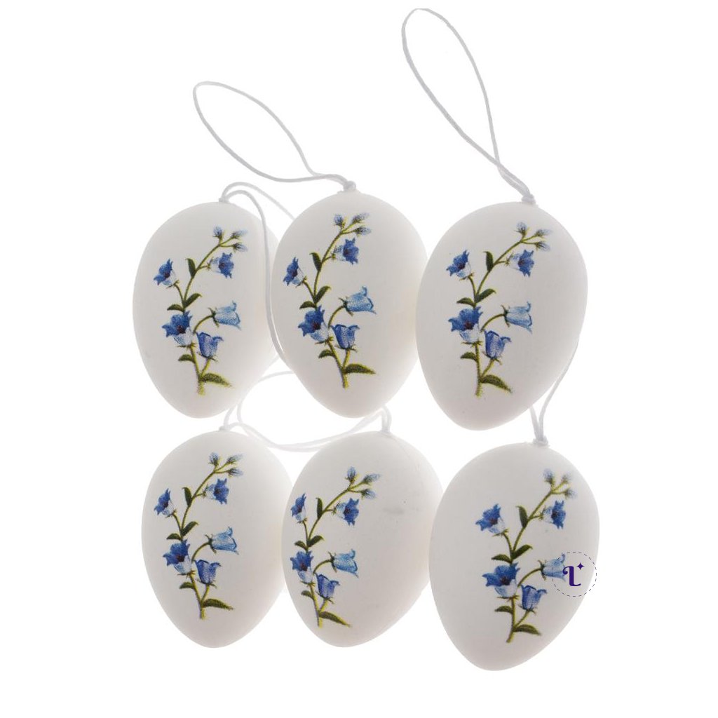 VEĽKÁ NOC Vajíčka Plastové vzorované ZÁVES VAJCE KVETY PLAST S/6 6CM BIELOMODRÉDodatočné parametre