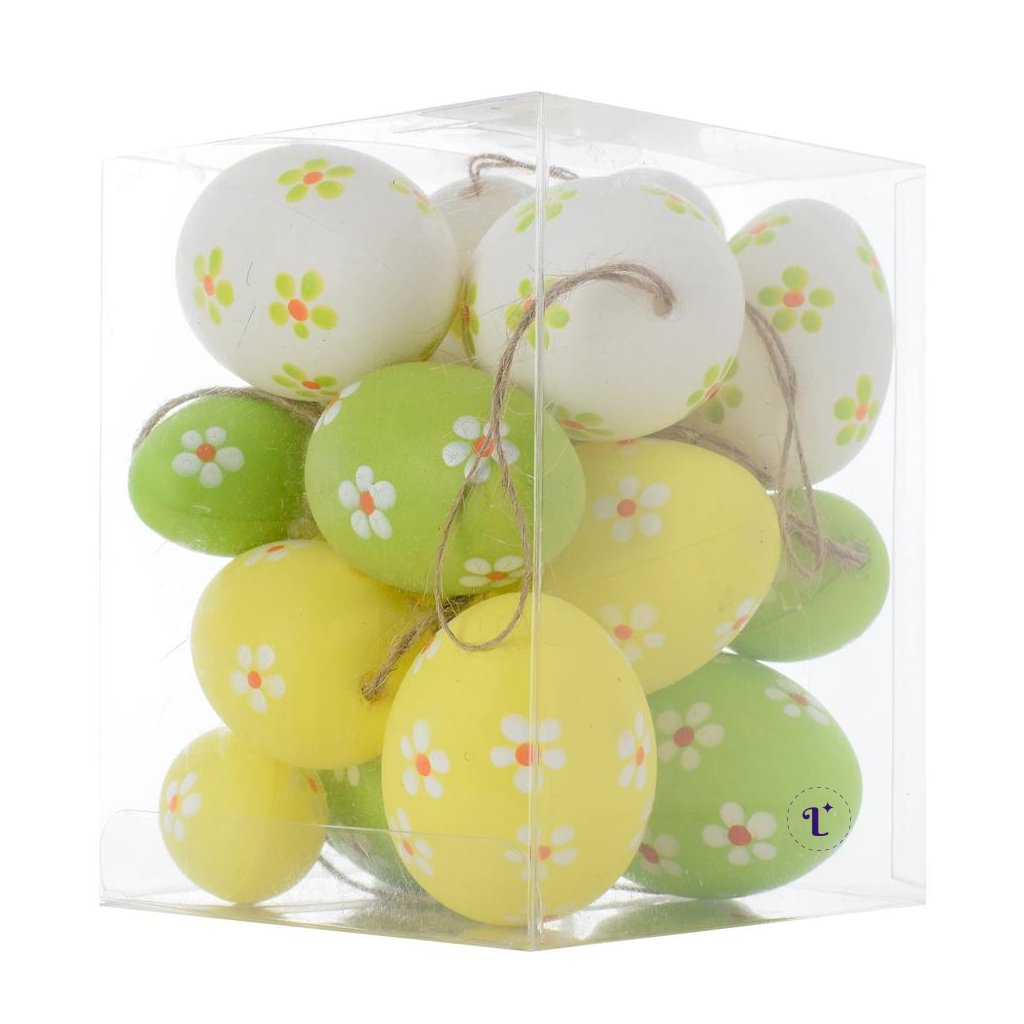 VEĽKÁ NOC Vajíčka Plastové vzorované ZÁVES VAJCE ŽLT, BIE, ZEL S KVIETKOM S/18 12,1*9,6*9,6CMDodatočné parametre
