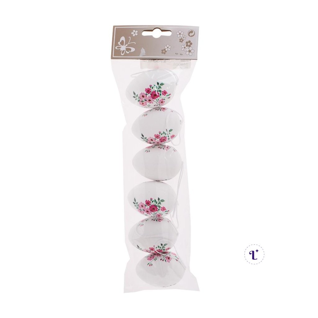 ZÁVES VAJÍČKA BIELE S KVETMI S/6 PLAST 6CM