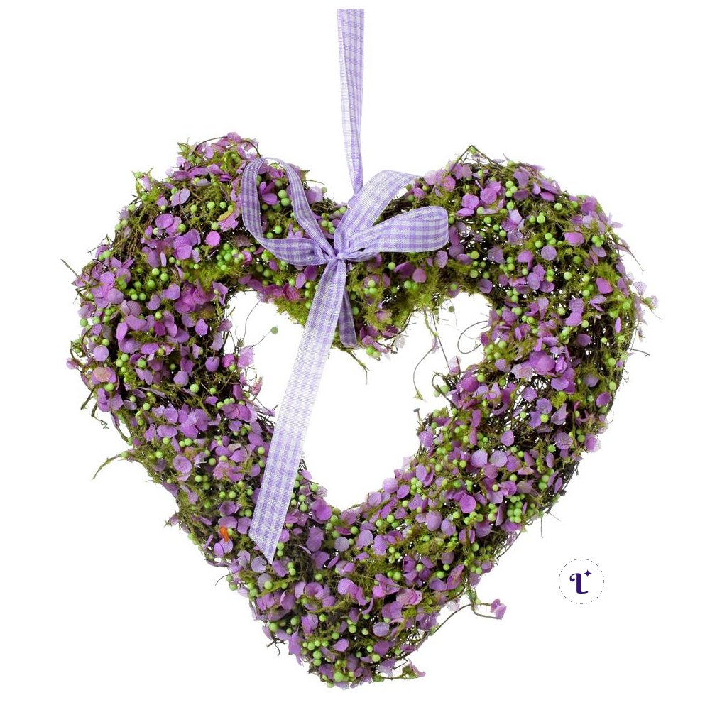 BYTOVÉ DOPLNKY Dekorácie prútie SRDCE RATAN/ MACH ZELENÝ, FIAL. KVIETKY, MAŠLA 21*21*4Dodatočné parametre