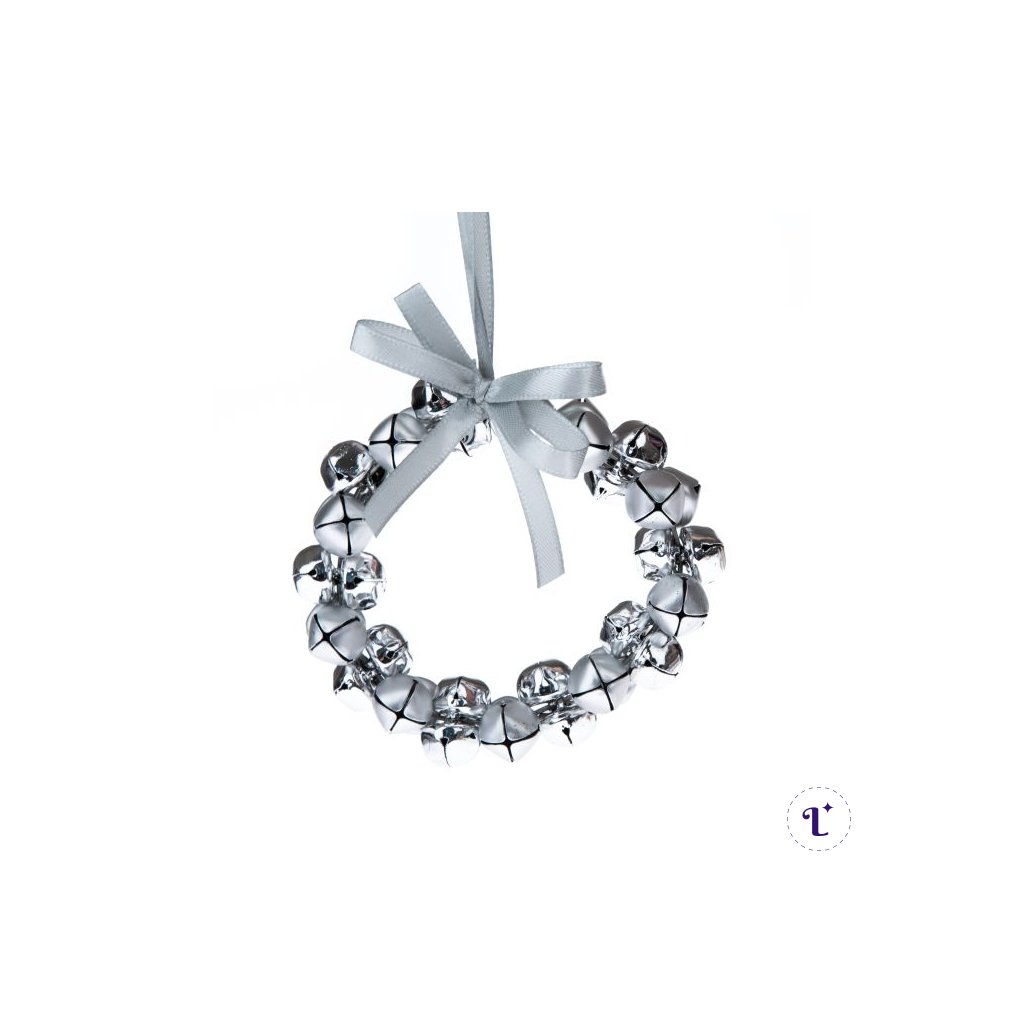 Kovový závesný rolničkový veniec - strieborný 10x10x2,5 cm