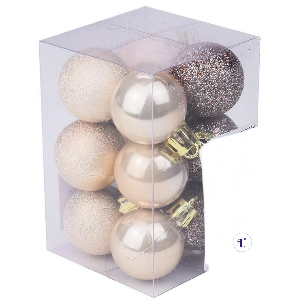 VIANOČNÉ GULE plastové CHAMPAGNE 3CM cena za 12ks